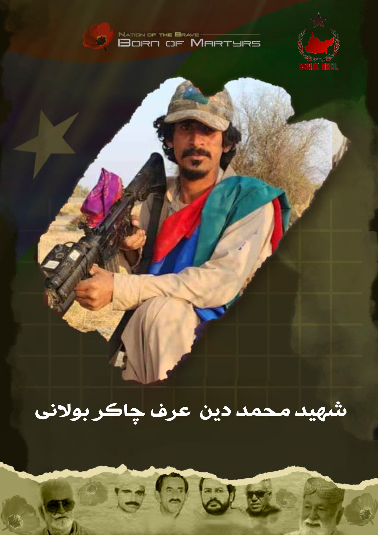 نام: شہید محمد دین عرف: چاکر بولانی ولد: فیض محمد علاقہ: چمالنگ، بلوچستان تاریخِ شہادت: 25 فروری 2024 مقامِ شہادت: کاہان