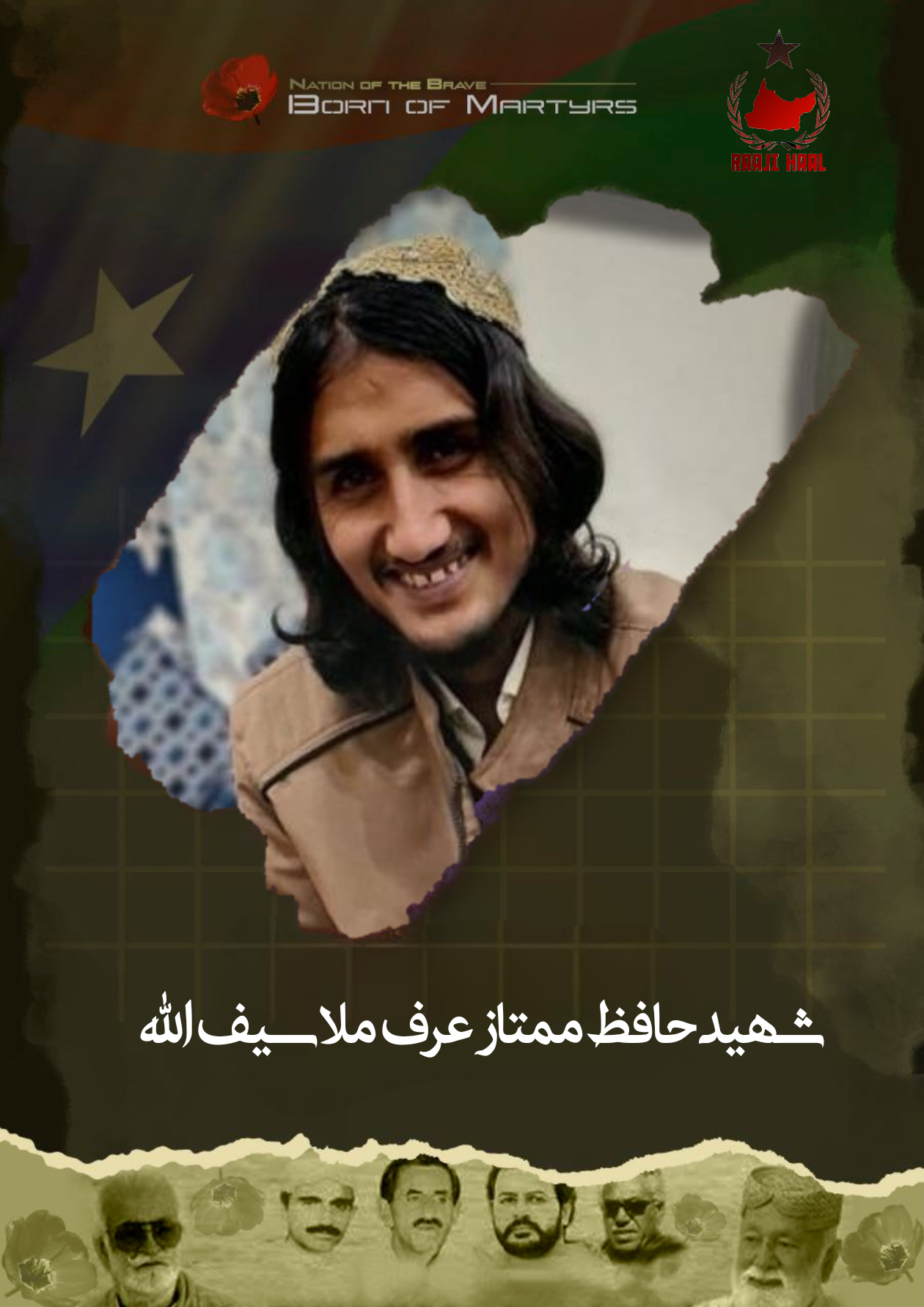 نام: شہید حفیظ بلوچ ولد: داود بلوچ عرف: حمل بلوچ علاقہ: میناز، بلیدہ، بلوچستان تاریخِ شہادت: 23 فروری 2025 مقامِ شہادت: میناز بازار، بلیدہ
