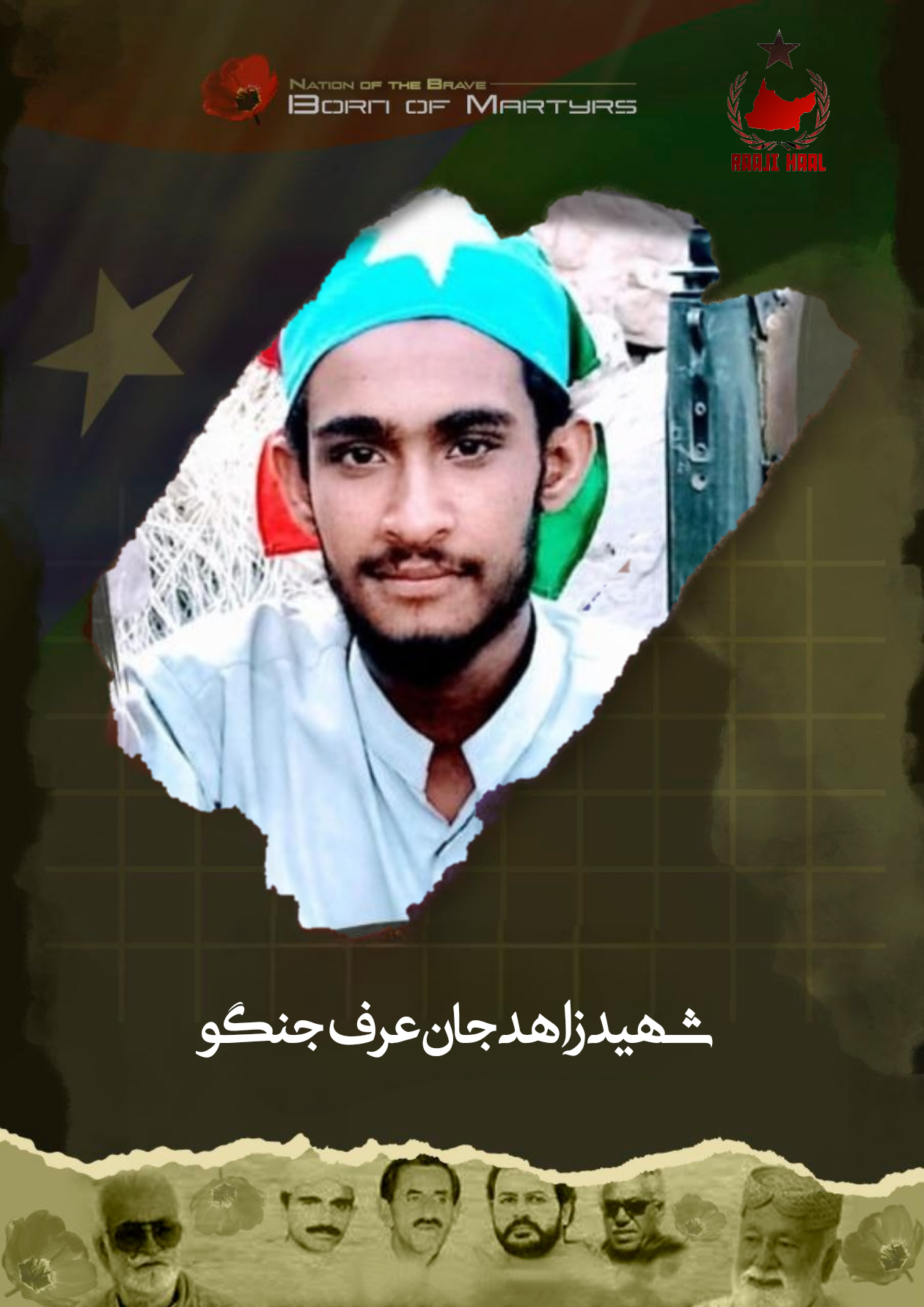 نام: شہید زاہد جان عرف: جنگو ولد: ذاکر بلوچ علاقہ: وشبود، پنجگور تاریخِ شہادت: 20 اگست مقامِ شہادت: پنجگور، چتکان